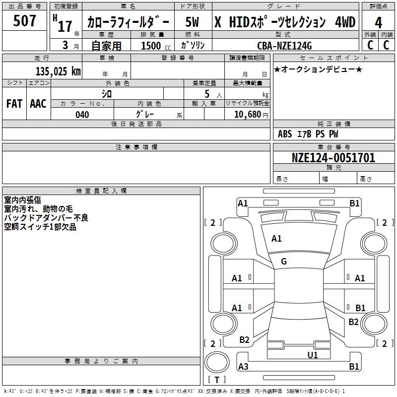 | X HID LIMITED | CBA-NZE124G | 1NZ-FE | Full-time 4WD | 4AT | 1496cc | 105ps(77kW)/6000rpm | AИ-92 | 1 806 000 | |