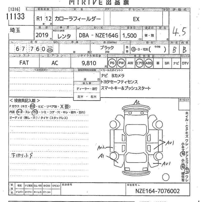 | EX | DBA-NZE164G | 1NZ-FE | Full-time 4WD | CVT | 1496cc | 103ps(76kW)/6000rpm | AИ-92 | 1 926 720 | |