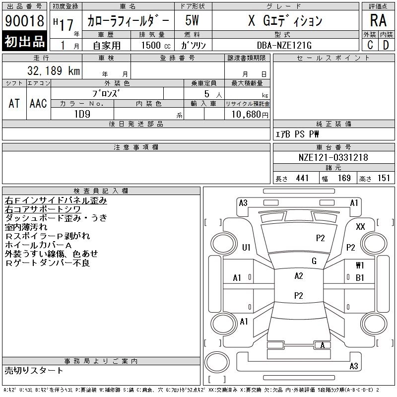 | X HID LIMITED | DBA-NZE121G | 1NZ-FE | FF | 4AT | 1496cc | 110ps(81kW)/6000rpm | AИ-92 | 1 596 000 | |