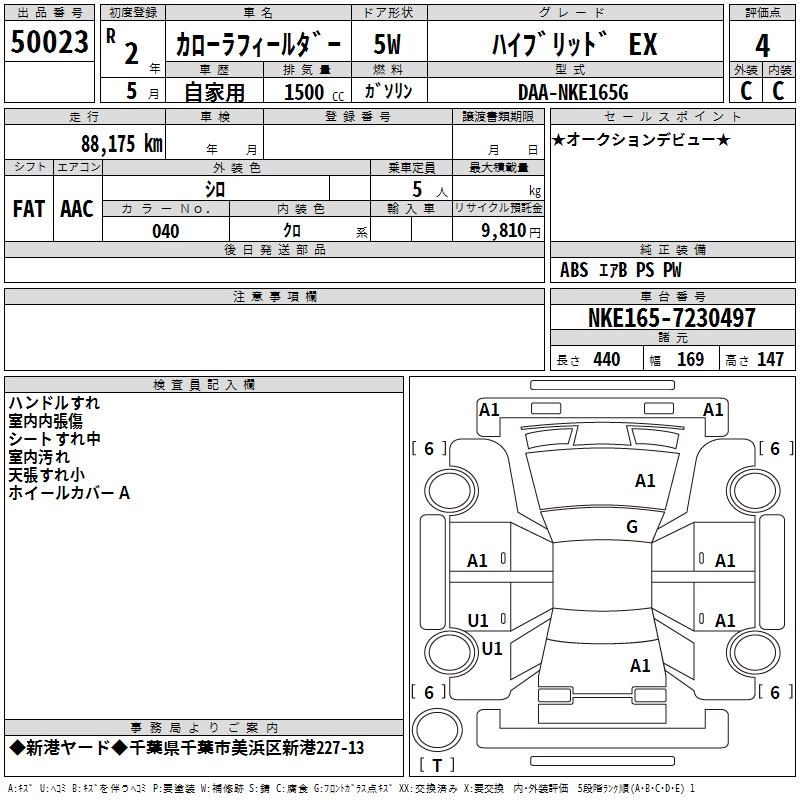 TOYOTA COROLLA FIELDER 2020 г., лот № 50023