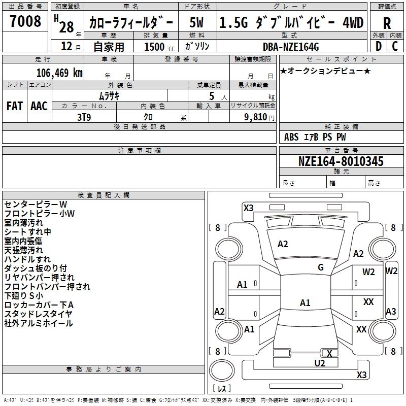 TOYOTA COROLLA FIELDER 2016 г., лот № 7008