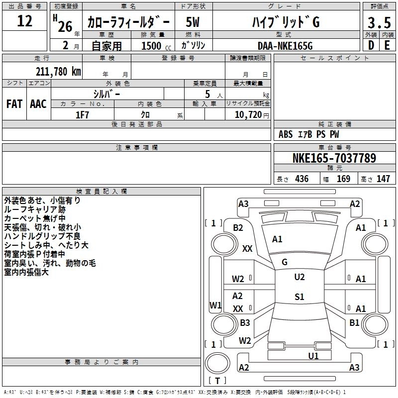 | 1.5G AEROTOURER | DBA-NZE164G | 1NZ-FE | Full-time 4WD | CVT | 1496cc | 103ps(76kW)/6000rpm | AИ-92 | 2 076 686 | |