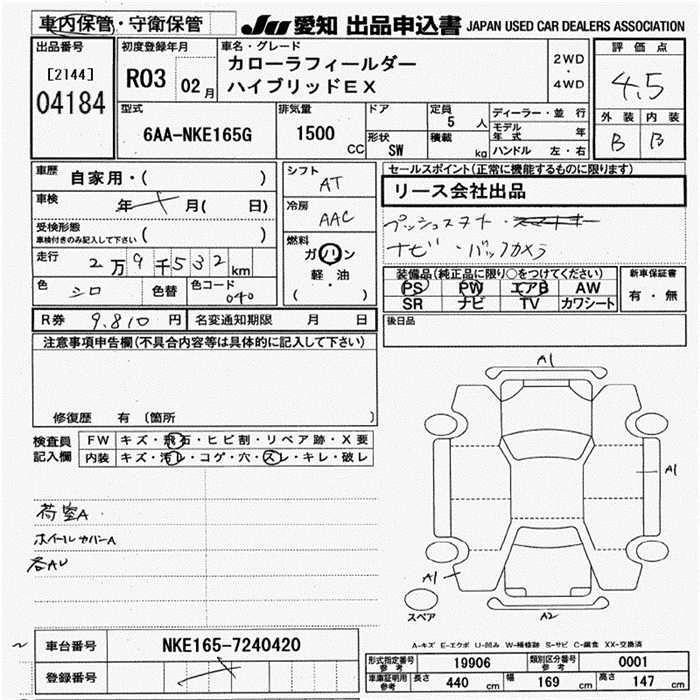 Статус выставлен на аукцион Лот 4184 Аукцион JU Aichi Дата аукциона 05.02.2026