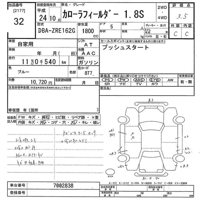 | 1.8S AEROTOURER | DBA-ZRE162G | 2ZR-FAE | FF | CVT | 1797cc | 140ps(103kW)/6200rpm | AИ-92 | 2 120 000 | |