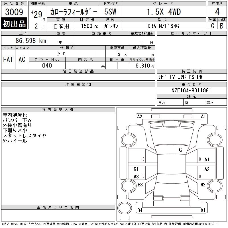 | 1.5X | DBA-NZE164G | 1NZ-FE | Full-time 4WD | CVT | 1496cc | 103ps(76kW)/6000rpm | AИ-92 | 1 915 920 | |