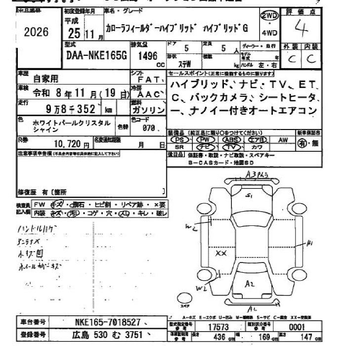 | HYBRID G AEROTOURER | DAA-NKE165G | 1NZ-FXE | FF | CVT | 1496cc | 74ps(54kW)/4800rpm | AИ-92 | 2 260 000 | |