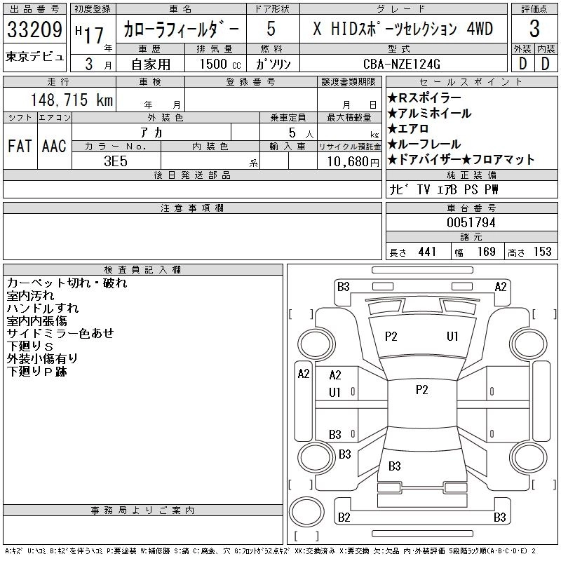 | X HID LIMITED | CBA-NZE124G | 1NZ-FE | Full-time 4WD | 4AT | 1496cc | 105ps(77kW)/6000rpm | AИ-92 | 1 806 000 | |