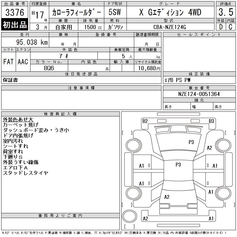 | X HID LIMITED | CBA-NZE124G | 1NZ-FE | Full-time 4WD | 4AT | 1496cc | 105ps(77kW)/6000rpm | AИ-92 | 1 806 000 | |