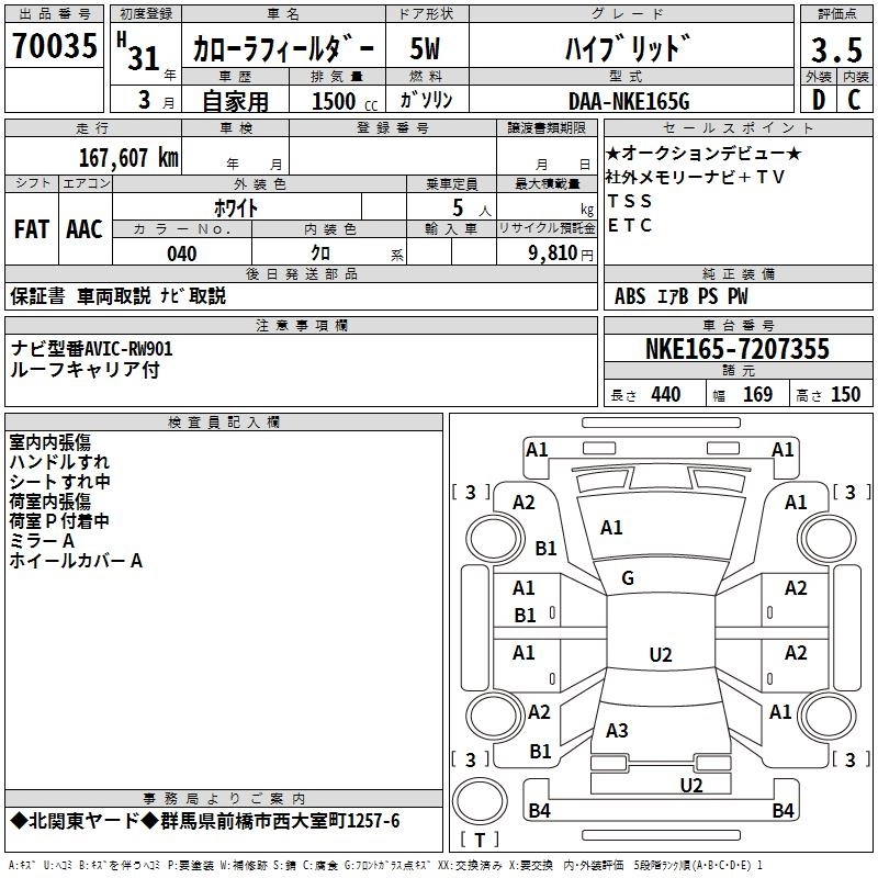 | EX | DBA-NZE164G | 1NZ-FE | Full-time 4WD | CVT | 1496cc | 103ps(76kW)/6000rpm | AИ-92 | 1 926 720 | |