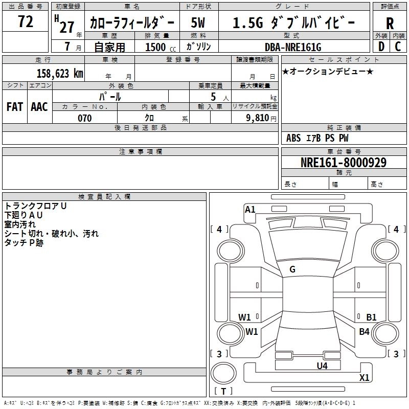 | 1.5X | DBA-NZE164G | 1NZ-FE | Full-time 4WD | CVT | 1496cc | 103ps(76kW)/6000rpm | AИ-92 | 1 885 091 | |