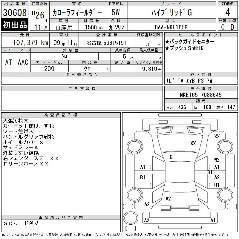| 1.5G AEROTOURER | DBA-NZE161G | 1NZ-FE | FF | CVT | 1496cc | 109ps(80kW)/6000rpm | AИ-92 | 1 882 286 | |