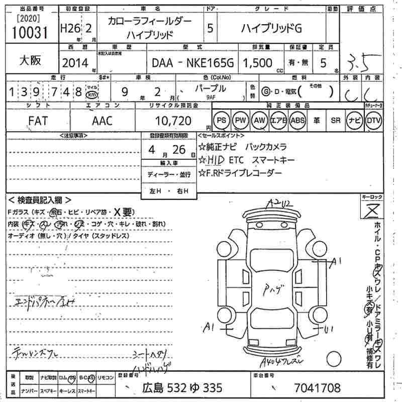 | 1.5G AEROTOURER | DBA-NZE164G | 1NZ-FE | Full-time 4WD | CVT | 1496cc | 103ps(76kW)/6000rpm | AИ-92 | 2 076 686 | |