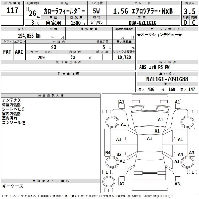 | 1.5G AEROTOURER | DBA-NZE161G | 1NZ-FE | FF | CVT | 1496cc | 109ps(80kW)/6000rpm | AИ-92 | 1 882 286 | |