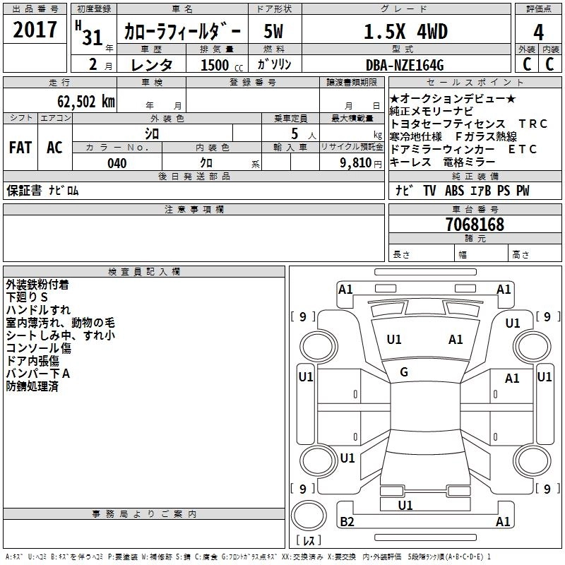 | EX | DBA-NZE164G | 1NZ-FE | Full-time 4WD | CVT | 1496cc | 103ps(76kW)/6000rpm | AИ-92 | 1 926 720 | |