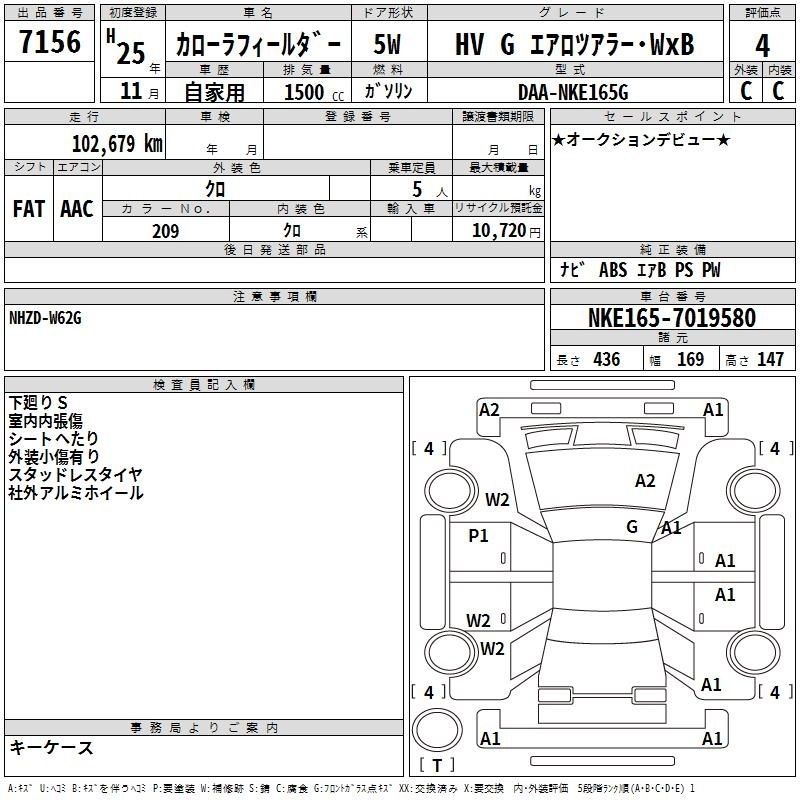 TOYOTA COROLLA FIELDER 2013 г., лот № 7156