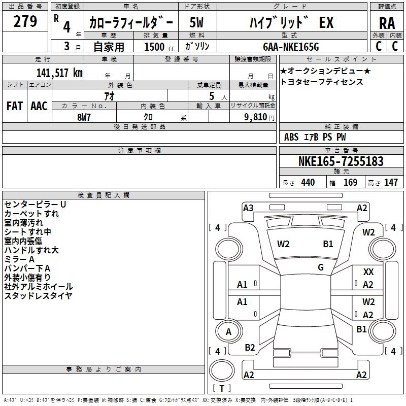 TOYOTA COROLLA FIELDER 2022 г., лот № 279