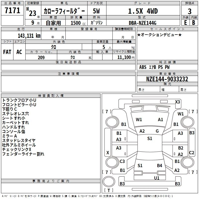| X HID EXTRA LIMITED | DBA-NZE144G | 1NZ-FE | Full-time 4WD | CVT | 1496cc | 105ps(77kW)/6000rpm | AИ-92 | 1 884 000 | |