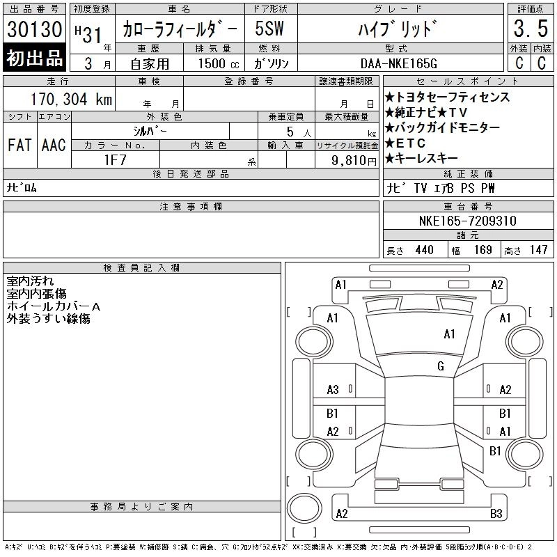 | EX | DBA-NZE164G | 1NZ-FE | Full-time 4WD | CVT | 1496cc | 103ps(76kW)/6000rpm | AИ-92 | 1 926 720 | |