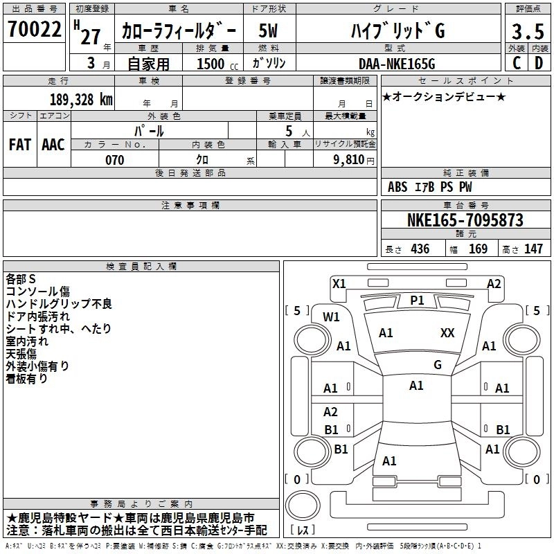 | 1.5G W。゚B | DBA-NZE164G | 1NZ-FE | Full-time 4WD | CVT | 1496cc | 103ps(76kW)/6000rpm | AИ-92 | 2 240 509 | |