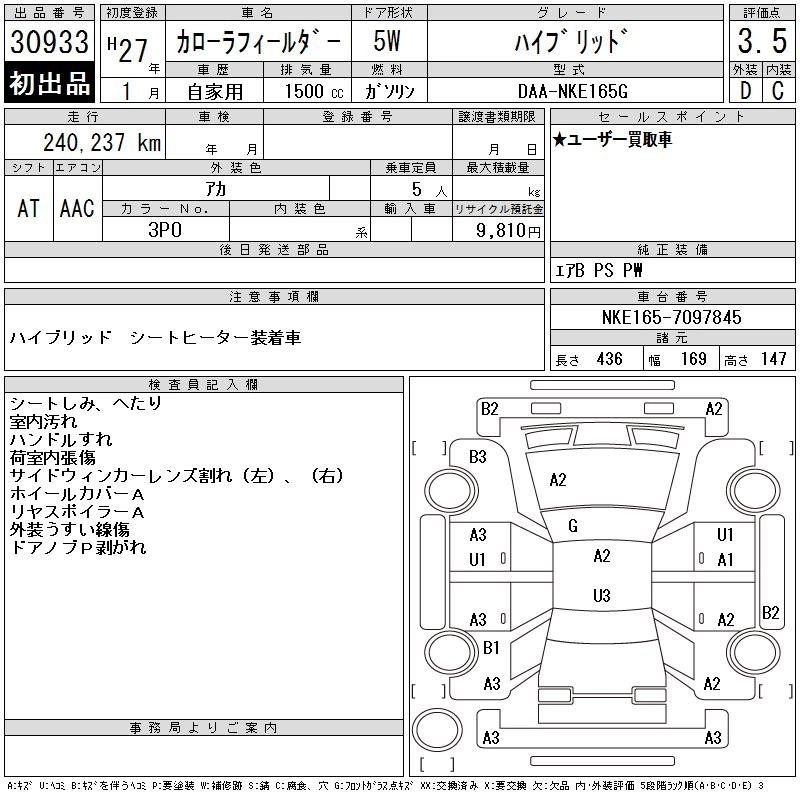 | 1.5G W。゚B | DBA-NZE164G | 1NZ-FE | Full-time 4WD | CVT | 1496cc | 103ps(76kW)/6000rpm | AИ-92 | 2 240 509 | |