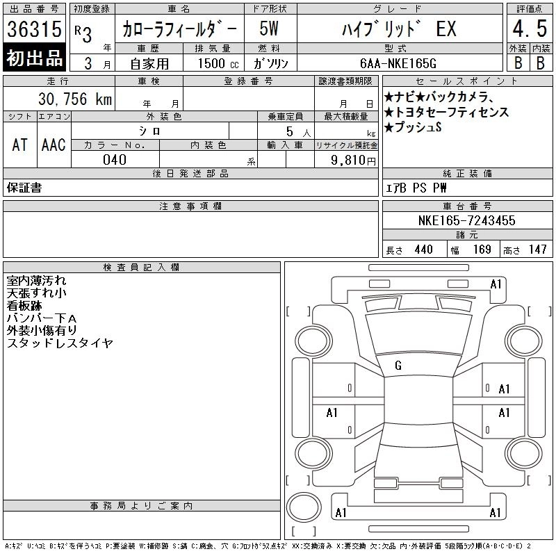 Статус продан Лот 36315 Аукцион CAA Chubu Дата аукциона 01.04.2026