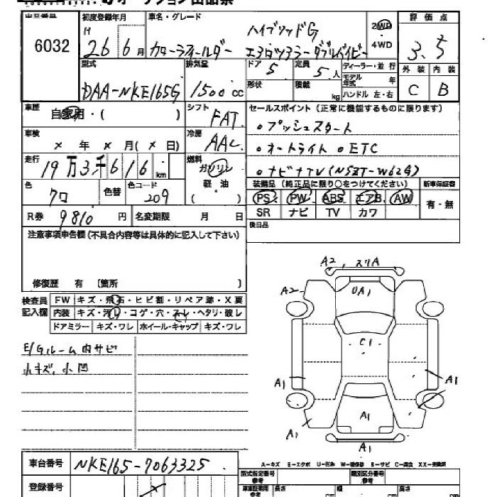 | 1.5G AEROTOURER | DBA-NZE164G | 1NZ-FE | Full-time 4WD | CVT | 1496cc | 103ps(76kW)/6000rpm | AИ-92 | 2 076 686 | |