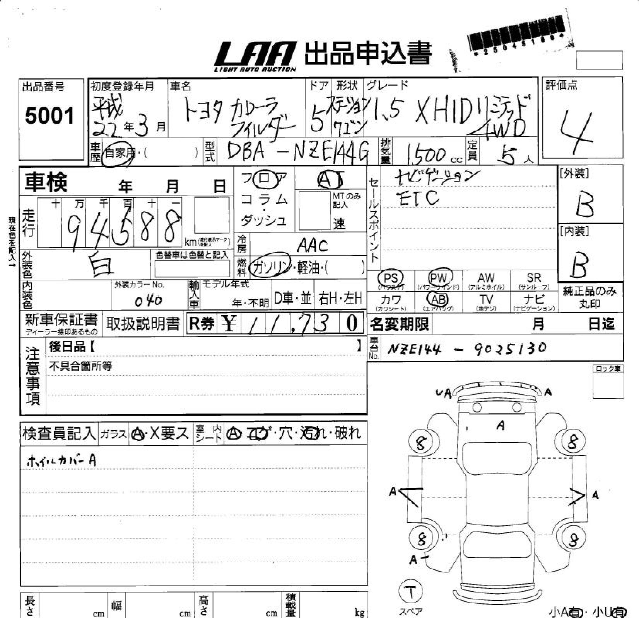 | 1.5X G EDITION | DBA-NZE141G | 1NZ-FE | FF | CVT | 1496cc | 110ps(81kW)/6000rpm | AИ-92 | 1 750 000 | |
