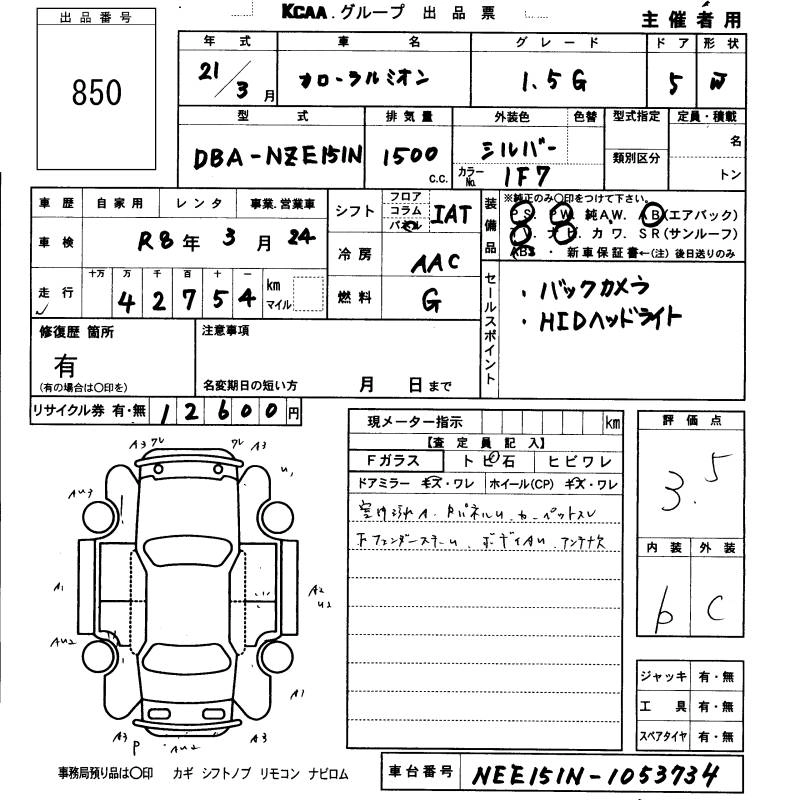 | 1.5X | DBA-NZE151N | 1NZ-FE | FF | CVT | 1496cc | 110ps(81kW)/6000rpm | AИ-92 | 1 690 000 |
