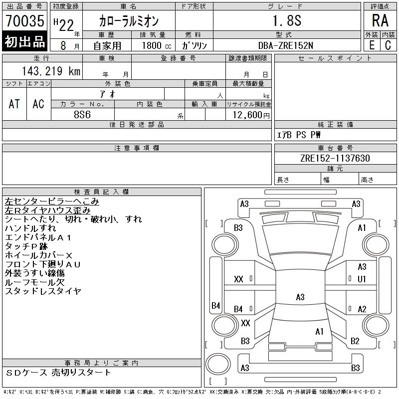 Статус выставлен на аукцион Лот 70035 Аукцион CAA Gifu Дата аукциона 17.03.2026