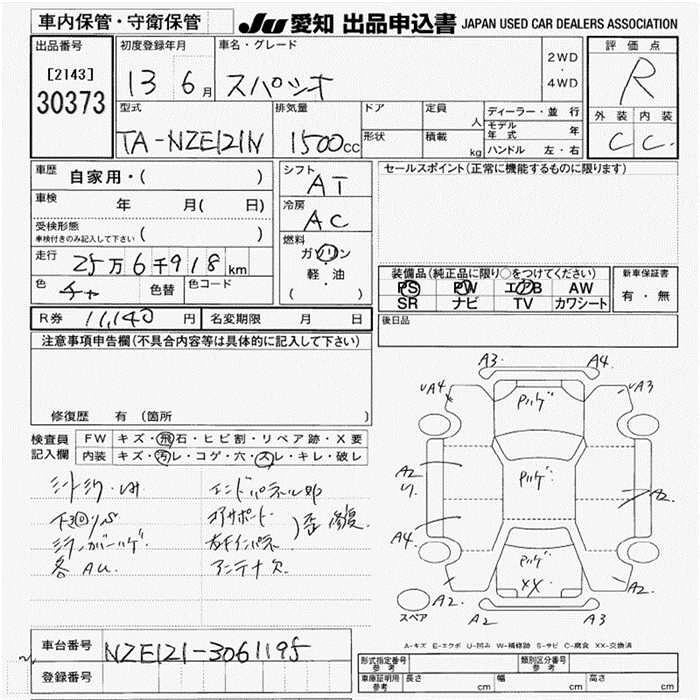 | X | TA-NZE121N | 1NZ-FE | FF | 4AT | 1496cc | 110ps(81kW)/6000rpm | AИ-92 | 1 537 000 | |
