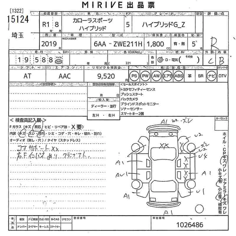Статус выставлен на аукцион Лот 15124 Аукцион MIRIVE Saitama Дата аукциона 18.03.2026