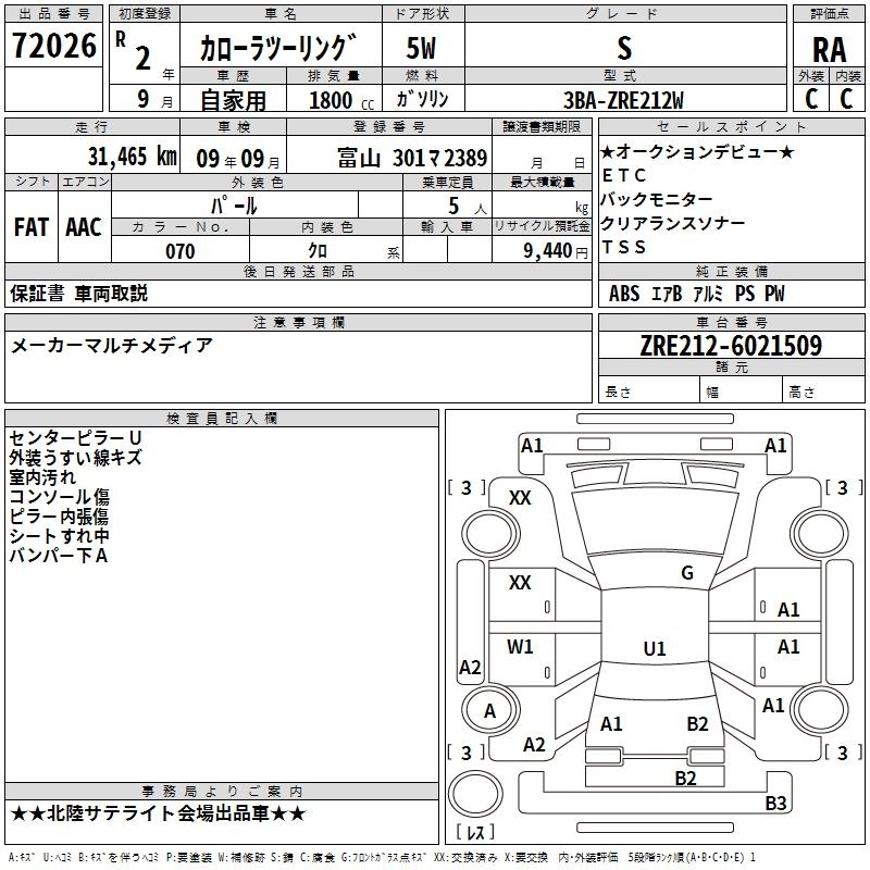 Статус выставлен на аукцион Лот 72026 Аукцион TAA Chubu Дата аукциона 29.01.2026