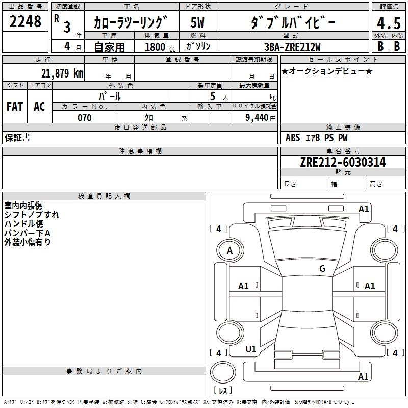 TOYOTA COROLLA WAGON 2021 г., лот № 2248