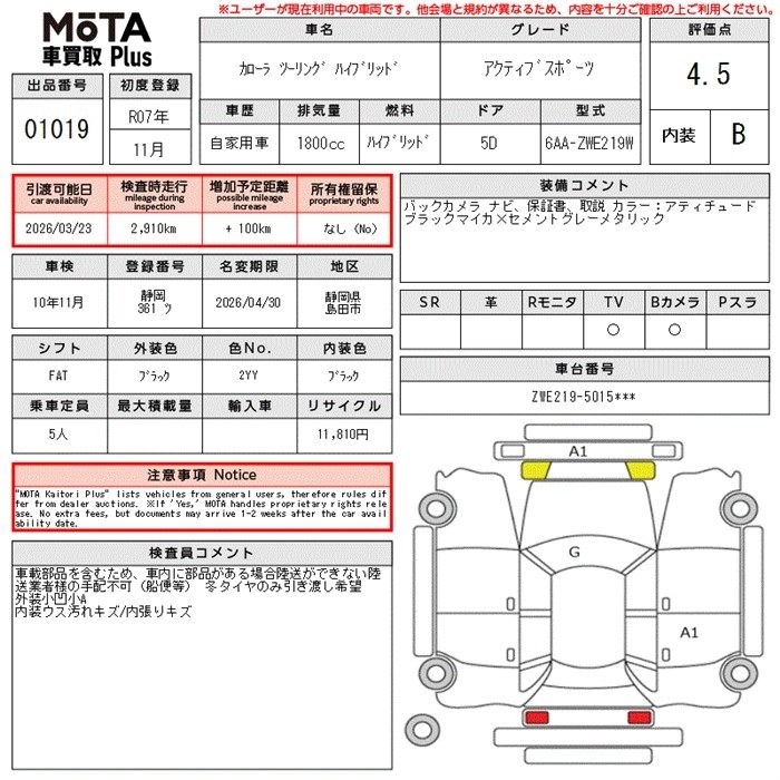 Год выпуска2025 Пробег 3 000 км КузовZWE219W Комплектация ACTIVE SPORTS