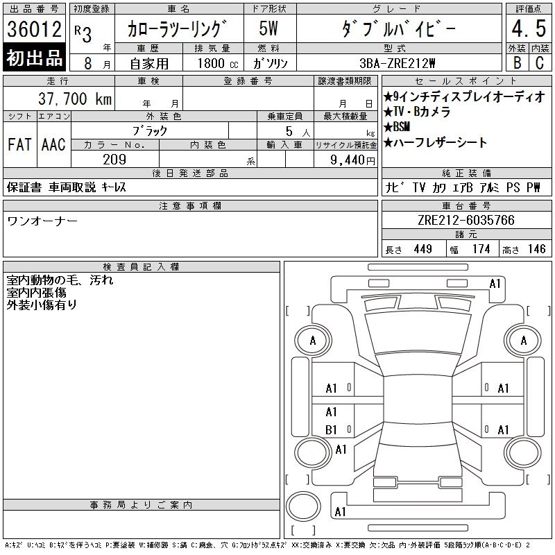 TOYOTA COROLLA WAGON 2021 г., лот № 36012