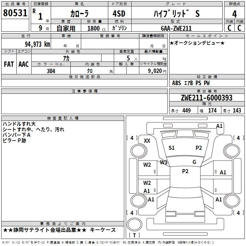 | HYBRID S | 6AA-ZWE211 | 2ZR-FXE | FF | CVT | 1797cc | 98ps(72kW)/5200rpm | AИ-92 | 2 574 000 | |