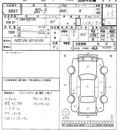 | X | CBA-NZE124 | 1NZ-FE | Full-time 4WD | 4AT | 1496cc | 105ps(77kW)/6000rpm | AИ-92 | 1 558 000 | |
