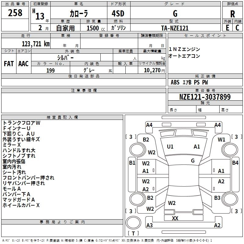 | X | TA-NZE124 | 1NZ-FE | Full-time 4WD | 4AT | 1496cc | 105ps(77kW)/6000rpm | AИ-92 | 1 548 000 | |