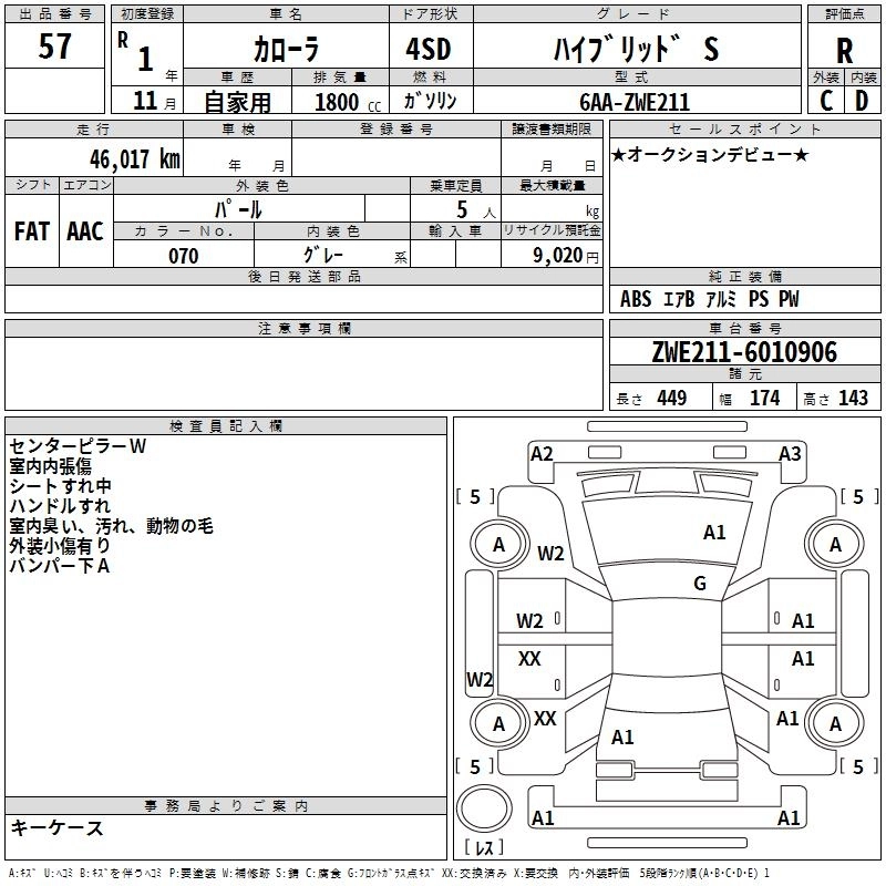 | HYBRID S | 6AA-ZWE211 | 2ZR-FXE | FF | CVT | 1797cc | 98ps(72kW)/5200rpm | AИ-92 | 2 574 000 | |