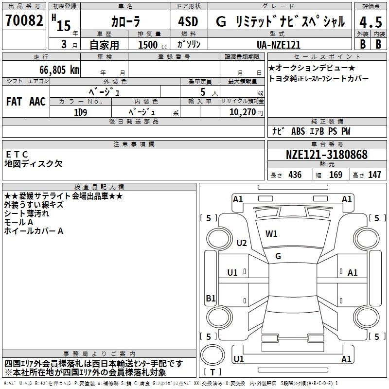 | G L PACKAGE NAVI EDITION | UA-NZE121 | 1NZ-FE | FF | 5MT | 1496cc | 109ps(80kW)/6000rpm | AИ-92 | 1 623 000 | |