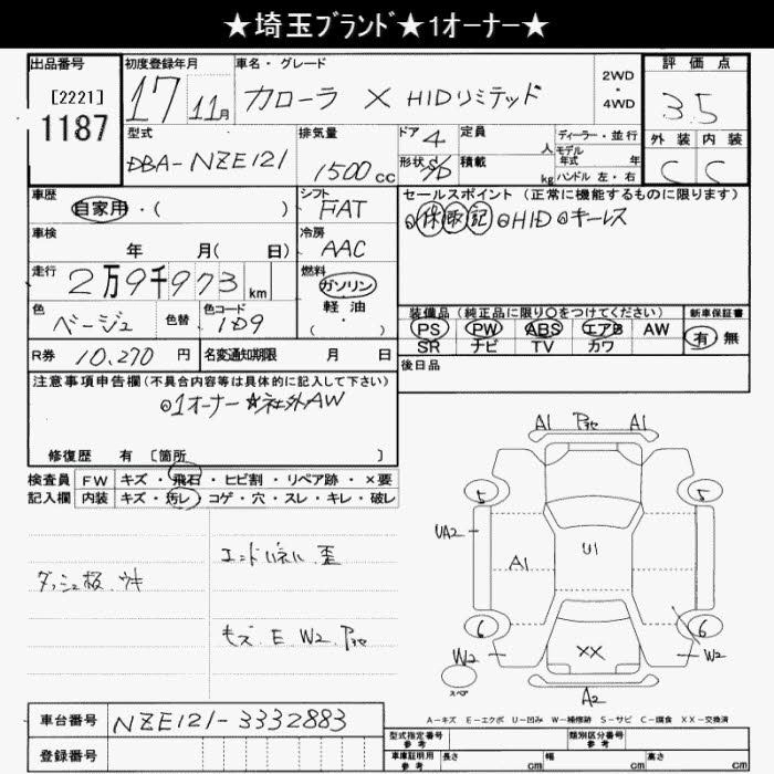 | X HID LIMITED | DBA-NZE121 | 1NZ-FE | FF | 4AT | 1496cc | 110ps(81kW)/6000rpm | AИ-92 | 1 554 000 | |