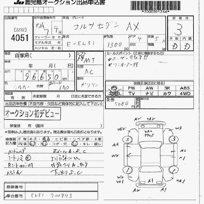 | AX SPECIAL | E-EL51 | 4E-FE | FF | 3AT | 1331cc | 88ps(65kW)/5600rpm | AИ-92 | 1 024 000 |