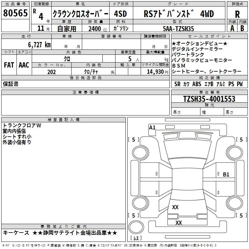 Статус выставлен на аукцион Лот 80565 Аукцион TAA Chubu Дата аукциона 29.01.2026