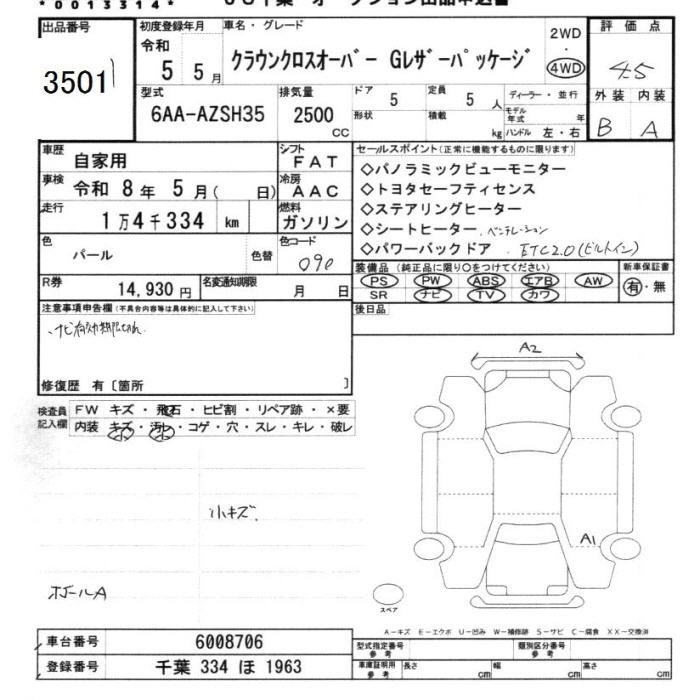 Статус выставлен на аукцион Лот 3501 Аукцион JU Chiba Дата аукциона 30.01.2026