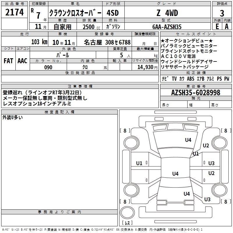 Статус выставлен на аукцион Лот 2174 Аукцион TAA Chubu Дата аукциона 29.01.2026