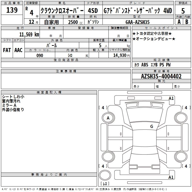 TOYOTA CROWN CROSSOVER 2022 г., лот № 139
