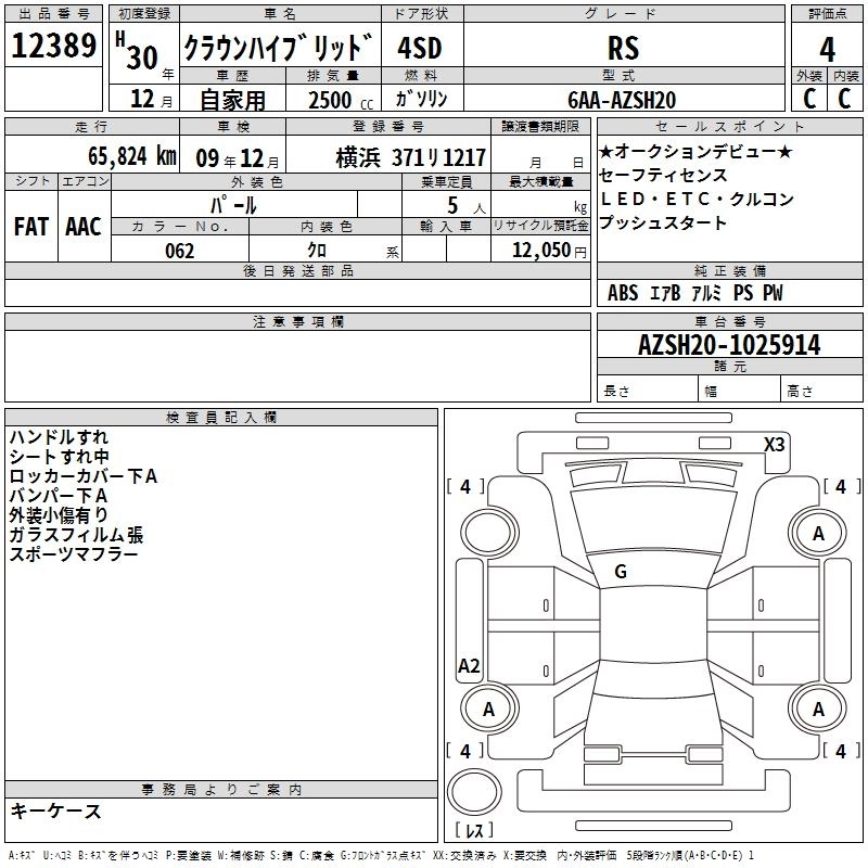 TOYOTA CROWN HYBRID 2018 г., лот № 12389
