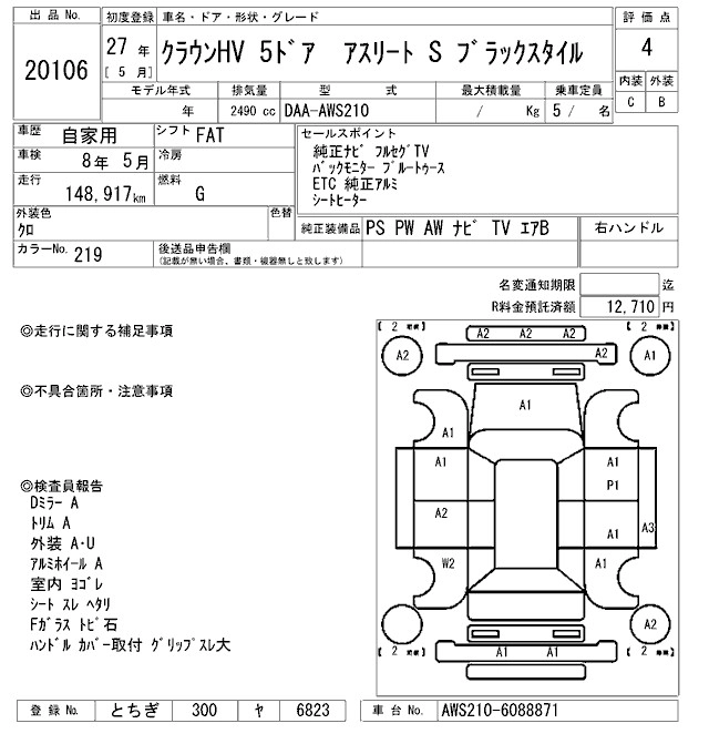 | ATHLETE S WAKAKUSAIRO EDITION | DAA-AWS210 | 2AR-FSE | FR | CVT | 2493cc | 178ps(131kW)/6000rpm | AИ-92 | 5 550 000 |