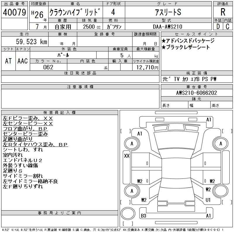 | ROYAL SALOON G | DAA-AWS210 | 2AR-FSE | FR | CVT | 2493cc | 178ps(131kW)/6000rpm | AИ-92 | 5 513 143 | |