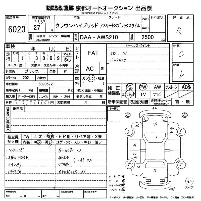 | ROYAL | DAA-AWS210 | 2AR-FSE | FR | CVT | 2493cc | 178ps(131kW)/6000rpm | AИ-92 | 4 310 000 | |